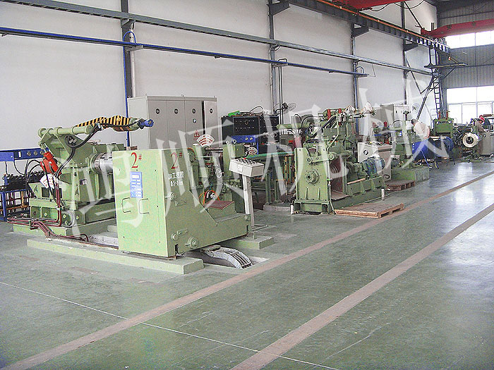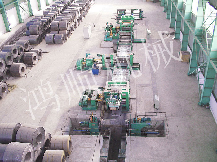 本機為多對刀片的圓盤剪切機組,由放料架、送料機、工作臺、圓盤剪切機、卷取機、電氣控制柜組合成一個機組。用于剪切中炭鋼、普炭鋼、有色金屬的20噸以下的大筒卷板料。按各種用度裁剪各種寬度的窄帶,作為焊管坯料冷軋帶鋼料及其它用途的扳帶,是目前使用進口及國產大卷筒扳料必須配備的設備。